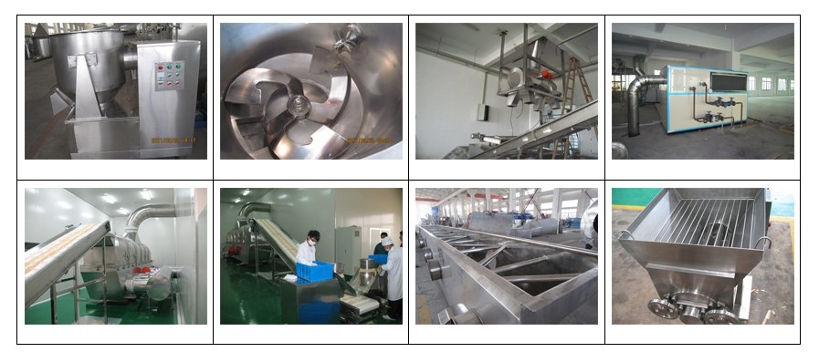 我公司可根據用戶的實際要求進行工程設計,目前單條生產線的產量有100kg/h、200kg/h、300kg/h、500kg/h、800kg/h、1500 kg/h等。雞精生產主要包括粉碎、混合、制粒、干燥、分篩、加香等步驟,我公司生產的雞精生產線具有工藝設計緊湊、設備制作精美、流水化運作程度高、產品品質穩定、易清潔保養等特點。設備與物料接觸部位全部采用優質不銹鋼材料,并經過精細拋光,耐鹽份腐蝕,清洗更方便,符合食品生產管理的QS要求及GMP標準。