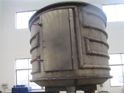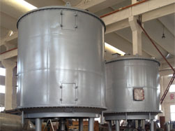 2、密閉型:圓筒形殼體,能承受5Kpa內壓,加熱介質進出口主管道可以在殼體內,也可以在殼體外。