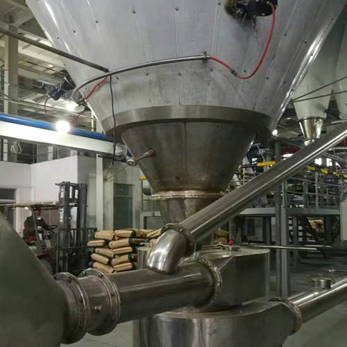 噴霧干燥機為開式循環,并流式,離心式霧化。干燥介質空氣經過初、中效空氣過濾器過濾后根據操作指令由鼓風機吸取再經加熱器加熱通過高效過濾器的熱風分配器進入噴霧干燥主塔。液體物料根據操作指令經過蠕動泵,進入高速旋轉的離心噴頭,在離心力作用下被分散成小霧滴。在噴霧干燥主塔內,小霧滴與熱風在充分接觸,沿其特定路徑進行熱交換后被干燥成為產品,然后通過旋風分離器實現分離,固體物料被收集,氣體介質再經過過濾后被排出。整套噴霧系統易清潔、無死角,符合GMP要求。