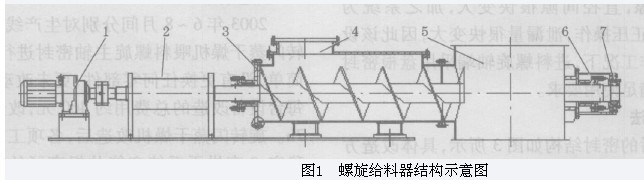 1——減速機; 2——軸承箱; 3——螺旋; 4——進料; 5——旋閃主機; 6——軸端密封; 7——軸承座