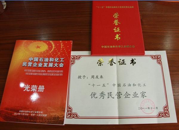 2011年11月19日,北京人民大會堂,由中國石油和化學工業聯合會舉辦的中國石油和化工民營企業發展大會如期舉行。本次會議是中國石油和化工民營企業、企業家最大的盛會,是中國石油和化工民營企業最具影響力的大會。常州力馬企業董事長周友來,在本次會議上榮獲“十一五”中國石油和化工優秀民營企業家稱號。