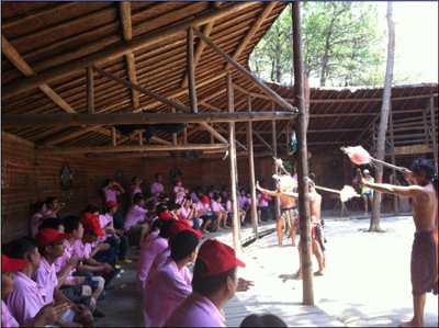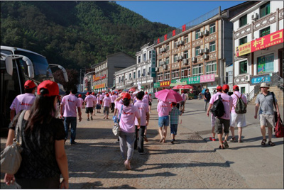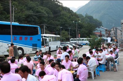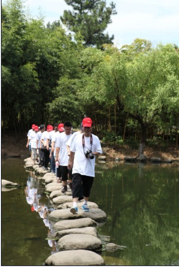 8月17日,旅游首日,上午三輛豪華大巴抵達安吉,游覽【竹博園】。在翠竹叢中,觀賞獨具匠心的造景藝術,閱覽源遠流長的竹子傳說和典故。行走于竹峰棧道,著實體驗了一番竹林騰飛的意境。農家午餐略作休憩,全員抵達【黃浦江源漂流】景區。當多艘竹筏在風光迷人、碧水映天的畫卷中靈動,當百余摯朋在嬉鬧樂呵、心神騰飛的境界里共鳴, 艷陽高照,歡歌四起,每個力馬人的笑容都如水天一色般迷人。漂流結束,入住農家,舉辦“篝火晚會”,多項互動節目寓教于樂,重申企業理念,抒發人文關懷。