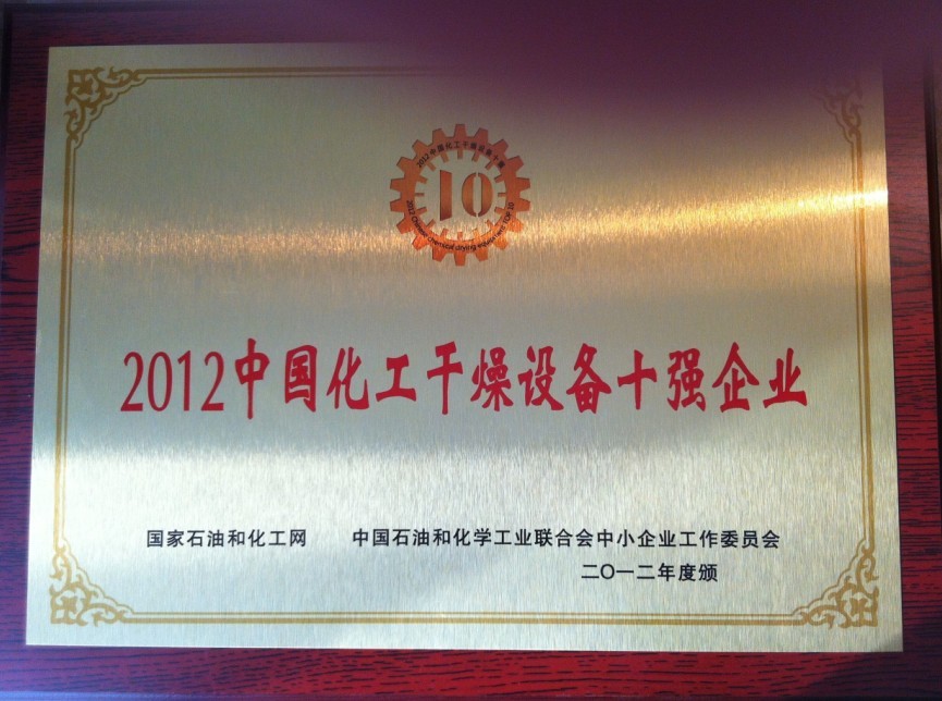 憑借2012優(yōu)異的銷售業(yè)績,卓越的企業(yè)管理水平,精湛的生產(chǎn)制造能力,周到的售后服務水準,常州力馬干燥工程有限公司獲評“2012中國化工干燥設備十強企業(yè)”。