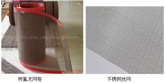 注意:①材料是導電的且表面有濕潤漿料有弱腐蝕性,所以網帶選用,需要考慮這個問題。