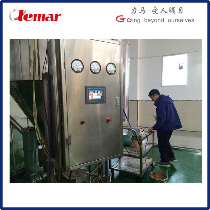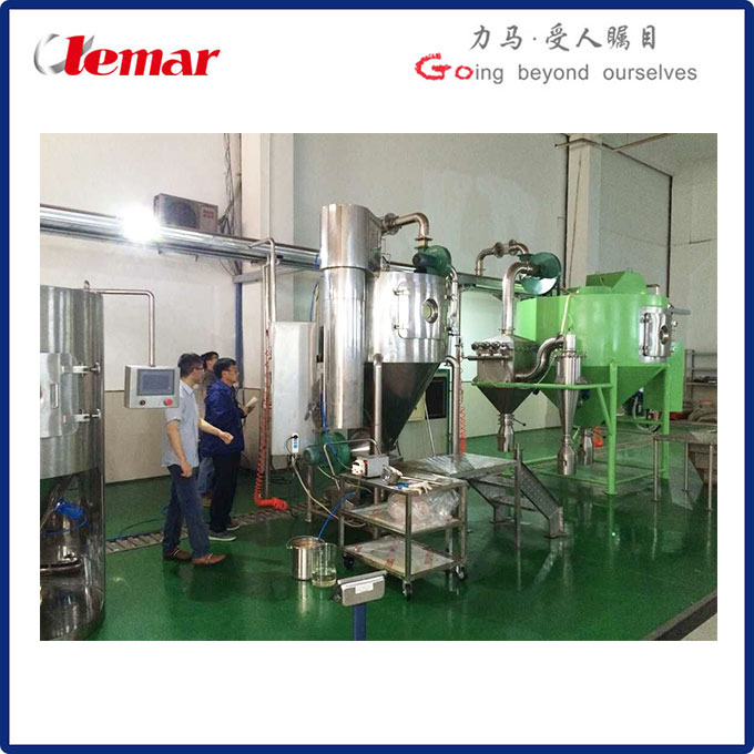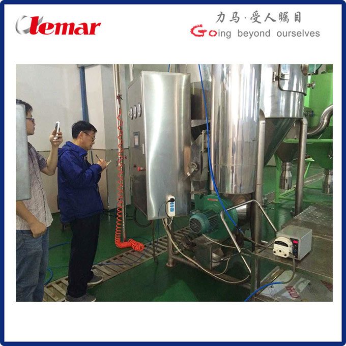 2015年5月16日湖南一制藥公司的張工和徐公一行到我公司進行中藥制粉實驗,經過40分鐘的等待,紅糖色的中藥液體很快變成了細膩的紅糖色粉末,色澤與中藥液體相同,味道也無差異,口感非常棒,得到了客戶的好評。