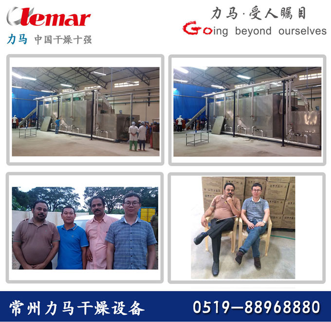 2015年9月30號,從印度傳來了喜訊,用于蔬菜干燥的三層帶式干燥機順利調試成功。