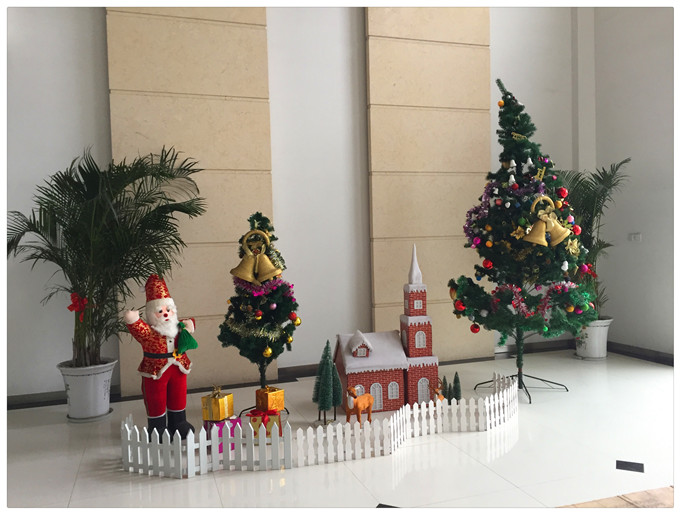 轉眼間,2015年圣誕已至,力馬公司上下呈現出濃重的節日氛圍,公司形象墻上掛起了彩紙和花環,大堂里擺放了喜慶的圣誕老人,卡通的小房子,馴鹿和禮物,還有掛滿彩燈和紙花的圣誕樹,將象征幸福、祥和、平安的節日氛圍帶給每一個人。